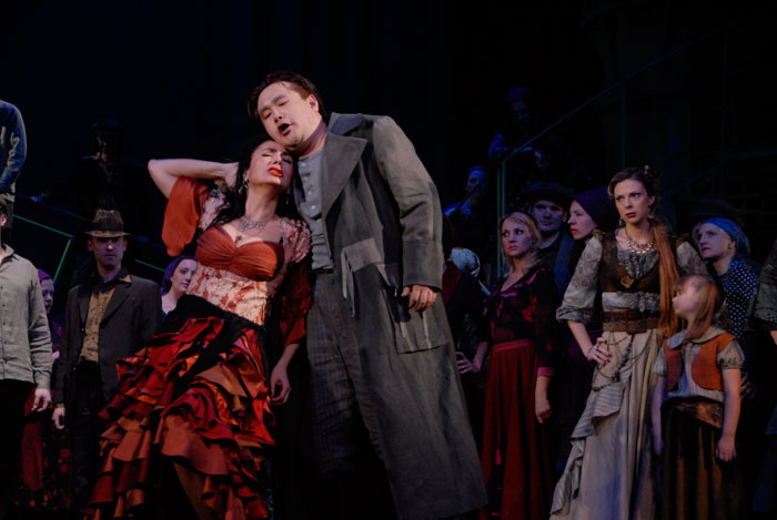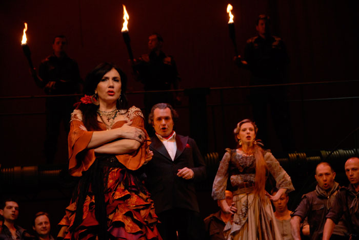 Everlasting fascination with Carmen, and the mystery of her, lay in the fact that there is neither a psychological definition for deep motives of her actions, nor the hierarchy of her motives. Carmen never explains herself; she only stresses her necessity to remain free. Does she love Don Jose? Carmen never says that. Nevertheless, she chooses him by giving him a flower in the first act. Why? Probably because he is different from other men: he pays no attention to her. Destiny has touched them, suddenly and strangely. Carmen has been disappointed with Don Jose’s hesitation and she provokes him for it. However, she is deeply interested in a man who thinks love is not a game and who becomes fatally attached to her. In the end, Carmen provokes death, despite all warnings that she will encounter Don Jose. The fact that she decides not to attend the event, where she would triumph, in order to see Don Jose, speaks a lot about Carmen.
