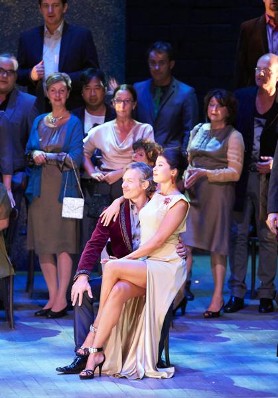 The guests at Flora’s party in costume and masked. Alfredo arrives and joins a group of cardplayers. Presently Violetta enters arm-in-arm with Baron Douphol, an old admirer of hers. Alfredo, who has enjoyed a run of luck with the cards, challenges his supposed rival to a game, but Violetta intervenes, fearing that it will come to a duel between the two men. True to her promise to Giorgio Germont not to reveal her real reason for leaving his son, Violetta tells Alfredo that she was really in love with Douphol all the time. Blind with rage, and in full view of Flora’s guests, Alfredo flings his winnings at Violetta’s feet as payment for her ”services“. Suddenly Giorgio Germont appears: full of remorse for having unfairly forced Violetta to conceal her love for his son, he expresses his disgust at his son’s behaviour.